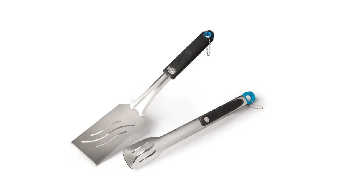 Dieses Napoleon®-Set beinhaltet einen Pfannenwender sowie eine Zange aus Edelstahl. Mit ergonomischen Griffen mit Soft-Touch-Grip Oberfläche. Der extralange Pfannenwender ist ideal für Steaks und anderes, größeres Grillgut. Der Pfannenwender besitzt einen Wellenschliff und einen besonders dünnen Rand.