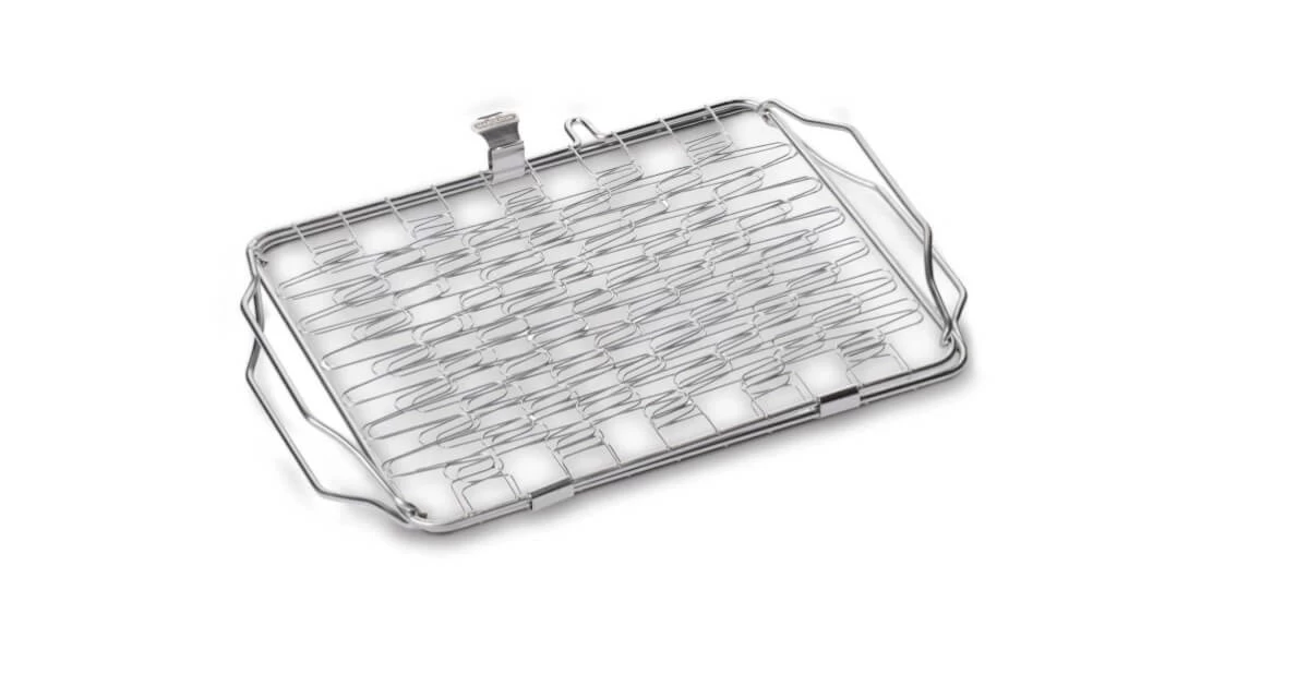 Napoleon® Halter mit flexibler Federmechanik für Elastizität. Hält Speisen zwischen den zwei Seiten fest und ist exzellent für die Zubereitung von Lachs, Gemüse etc. geeignet. Aufgrund der Bügel an beiden Seiten ist indirekts Grillen möglich. Spülmaschinenfest. Passend für fast alle Grillmodelle (40,1 cm x 26,2 cm x 8,6 cm).