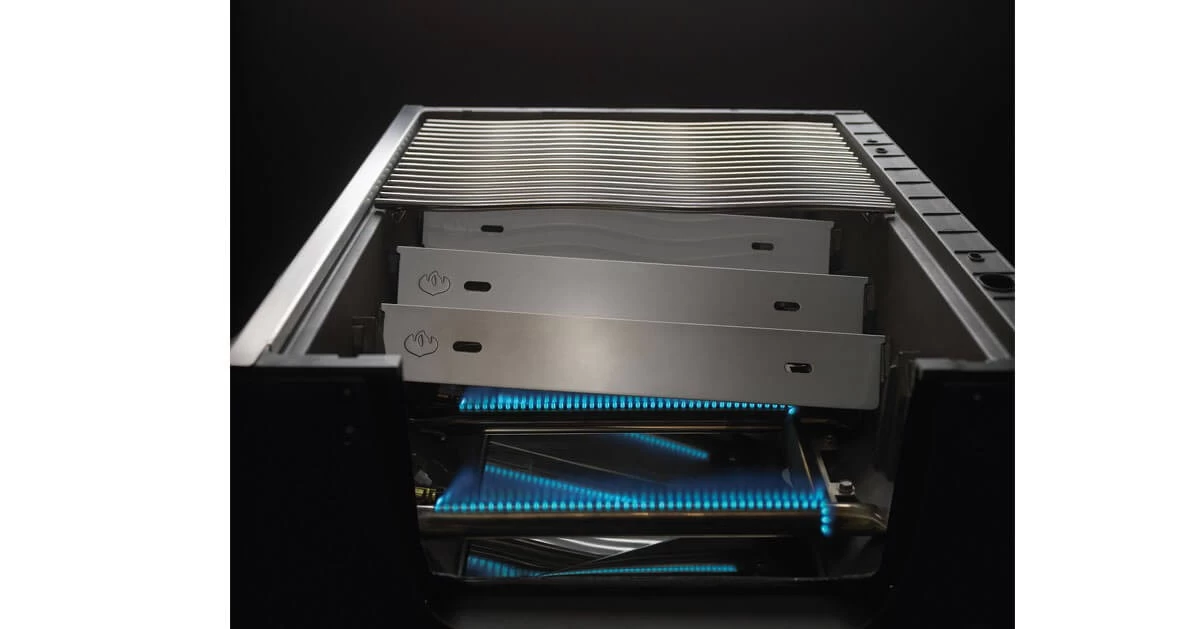 Die in zwei Ebenen angeordneten Wärmeverteiler sorgen für eine regelmäßige Hitzeverteilung auf dem Grillrost und verringern dadurch das Entstehen sogenannter „Hotspots“. Dabei ist nicht nur der Höhenunterschied der Wärmeverteiler wirkungsvoll, sondern auch die von hinten nach vorne aufsteigende Positionierung der Verteilerbleche. Denn diese sorgt für den Transport der im hinteren Bereich naturgemäß heißeren Luft in den vorderen, etwas kühleren Bereich. Zudem sorgen die selbstreinigenden Wärmeverteiler für reduziertes Auffl ackern der Gasfl ammen, da sie abtropfende Fette und Bratensaft an der Flamme vorbeileiten. Dadurch wird aber nicht nur das Grillen sicherer, sondern es sorgt auch für ein besseres und unverfälschteres Aroma des zubereiteten Grillguts.