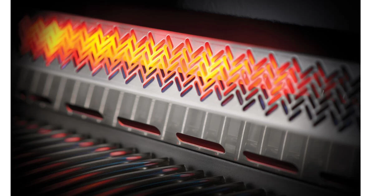 Holzkohle ist die traditionelle Art des Infrarotgrillens, mit der wir alle vertraut sind: Glühende Briketts geben Infrarotenergie an das Grillgut ab, dieses wird zielgerichtet erhitzt und es entstehen sowohl herrliche Röstaromen als auch eine köstliche Kruste. Bei den SIZZLE ZONE Infrarotbrennern von Napoleon erhält man diese Vorzüge in Verbindung mit komfortabler Gastechnologie: Jeder Brenner enthält tausende Gasauslässe, die die keramische Oberfläche aufheizen, bis sie rot zu glühen beginnt. Die dadurch entstehende Infrarot-Strahlung erwärmt nicht etwa die Umgebungsluft, sondern die Hitze trifft direkt auf das Grillgut und dringt besonders tief ein. Zusätzlich entsteht ein konsistenter Wärmebereich, der gegenüber einem
