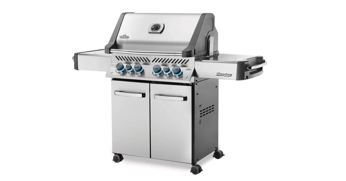 Der Napoleon Gasgrill Prestige® 500 mit Infrarot-Seiten- und Heckbrenner hat alles, was man zum Grillen braucht. Die Konstruktion dieses Grills ist hochwertig in der Verarbeitung und hat alle Möglichkeiten, damit Sie Ihre KĂĽche ins Freie bringen. Mit vier Hauptbrennern, einem Infrarot-Heckbrenner, sowie einem SIZZLE ZONE™ Infrarot-Seitenbrenner können Sie mit diesem Grill Gerichte in verschiedenen Grill-Varianten zubereiten. Es gibt genug Platz fĂĽr bis zu 30 Hamburger und fĂĽr noch mehr Grillgut am Infrarot-Seitenbrenner. Sie erkennen unsere ikonischen Napoleon WAVE™ Grillroste am charakteristischen Branding auf Ihrem Grillgut. Nicht nur auĂźen langlebig – unter der Haube befindet sich hochwertiger Edelstahl, der auch fĂĽr die Rohrbrenner, die zweistufigen Flammenschutzeinsätze und die Grillroste verwendet wird. Die sieben Edelstahl-Flammenschutzeinsätze sorgen fĂĽr eine gleichmäßige Hitzeverteilung und sorgen dafĂĽr Fetttropfen von Ihren Lebensmitteln verdampfen und so wird ein Aufflammen verhindert. Vergessen Sie nie wieder Ihren Grill auszuschalten. Alle Grills der Prestige®-Serie sind mit der SAFETY GLOW™ Funktion ausgestattet – dank dieser Ausstattung leuchten alle Drehknöpfe rot bei denen die Gaszufuhr der Brenner noch an ist.
