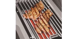 Holzkohle ist die traditionelle Art des Infrarotgrillens, mit der wir alle vertraut sind: Glühende Briketts geben Infrarotenergie an das Grillgut ab, dieses wird zielgerichtet erhitzt und es entstehen sowohl herrliche Röstaromen als auch eine köstliche Kruste. Bei den SIZZLE ZONE Infrarotbrennern von Napoleon erhält man diese Vorzüge in Verbindung mit komfortabler Gastechnologie: Jeder Brenner enthält tausende Gasauslässe, die die keramische Oberfläche aufheizen, bis sie rot zu glühen beginnt. Die dadurch entstehende Infrarot-Strahlung erwärmt nicht etwa die Umgebungsluft, sondern die Hitze trifft direkt auf das Grillgut und dringt besonders tief ein. Zusätzlich entsteht ein konsistenter Wärmebereich, der gegenüber einem