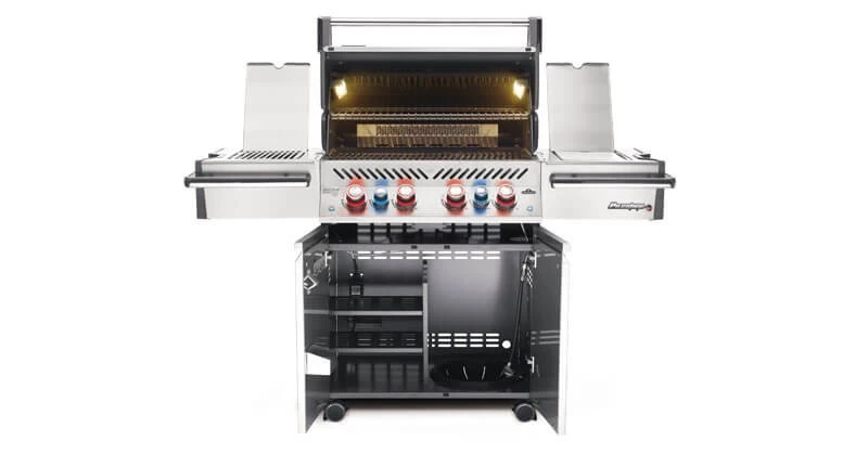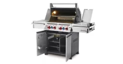 Auf der 71 x 45 cm großen Hauptgrillfläche sorgen 9,5 mm dicke WAVE™ Edelstahl-Stabgrillroste für das typische und beliebte Napoleon-Branding. Die beidseitigen Ablagen halten nebst Seitenbrenner und Zubereitungsfläche auch ein Fach für kühle Getränke mittels Crushed Ice und ein integriertes Schneidebrett, verchromte Handtuchhalter, Besteckhaken und Gewürzablagen bereit. So sind Grillzange und anderes Grillzubehör stets zur Hand.