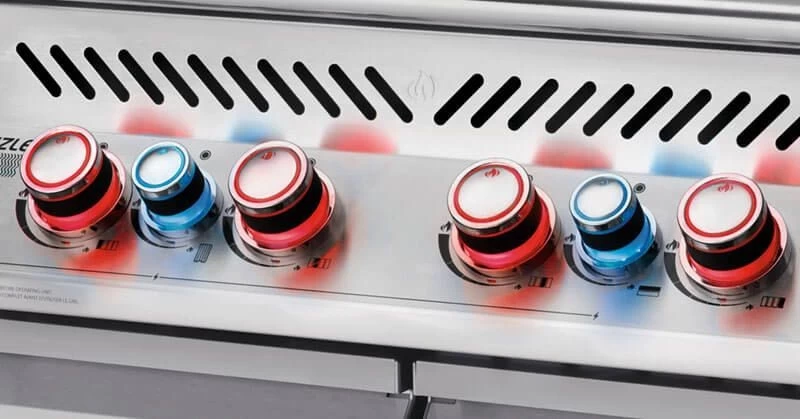Sollte das Grillvergnügen mal etwas länger dauern, ermöglichen die neuen SAFETY GLOW™ Drehregler mit integrierter Hintergrundbeleuchtung, die sich von blauem auf rotes Licht ändert wenn Gas strömt, auch bei Dunkelheit eine präzise Bedienung.