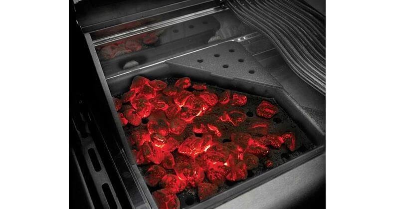 Verwandeln Sie Ihren Gasgrill in einen Holzkohlegrill. Einfach die Flammenschutzeinsätze rausnehmen, den Holzkohleeinsatz auf den Brennern platzieren, Kohlen einlegen und mit dem Gasbrenner entzünden. Wenn die Kohlen „durchgeglüht“ sind, den Brenner abstellen, Roste einlegen und über den Kohlen grillen. Inkl. Räucherkammer für mehr Aroma!
