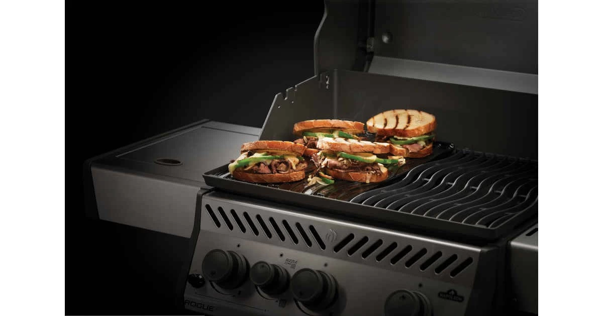 Napoleon® Gusseisen-Wendeplatte mit einer glatten Seite und einer Seite mit gewelltem Profil. Passend für Rogue 425, Rogue XT 425, Rogue XT 525 und die Rogue SE-Modelle. Die neue Porzellan-Emaillierung schützt die Platte vor Korrosion und besitzt dadurch auch eine bessere Antihaft-Beschichtung. Ideal für kleinteiliges Grillgut, Spiegeleier, Burgerpatties, Meeresfrüchte etc. (45,1 cm x 29,5 cm).