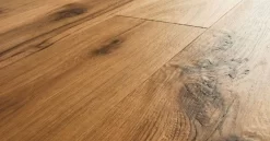 Mit der Landhausdiele bringen wir unsere Erfahrung zum Ausdruck und erzielen eine Färbung die unterstützt durch die charakterstarke Maserung der Hickory ein fantastisches Bodenbild erzeugt. Die Vertiefungen im Holz sind sanft eingearbeitet und ermöglichen eine leichte Reinigung. Eine sehr matte Oberflächenlackierung bildet das Finish des Bodens und lässt die eindrucksvolle Farbe voll zur Geltung kommen.