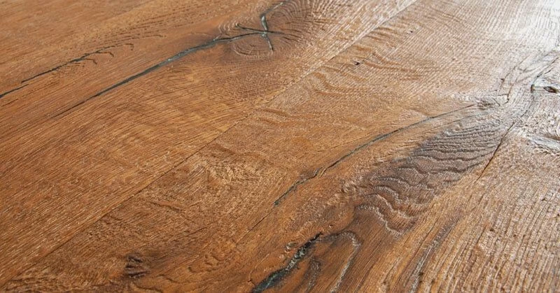 Es handelt sich um einen markanten und eher rustikal erscheinenden Eichenboden. Besonders auffällig sind die Risse in der Oberfläche und die kräftige Struktur. Spannungsrisse entstehen durch das Ausdehnen und Zusammenziehen im natürlichen Trocknungsprozess von Holz. Diesen Effekt stellen wir im Produkt dar und arbeiten jede Stelle sorgfältig nach, indem wir händisch die Risse absoften.