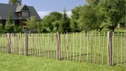 Haselnuss naturbelassen und handgespalten, Maß ca. B 500 cm. Die Staketen sind in einem Abstand von 7-8 cm gehalten. Die Verbindung ist aus verzinktem Draht. Es wird empfohlen 3 cm Bodenfreiheit bei der Montage einzuhalten. Ohne Pfosten (gegen Aufpreis erhältlich).