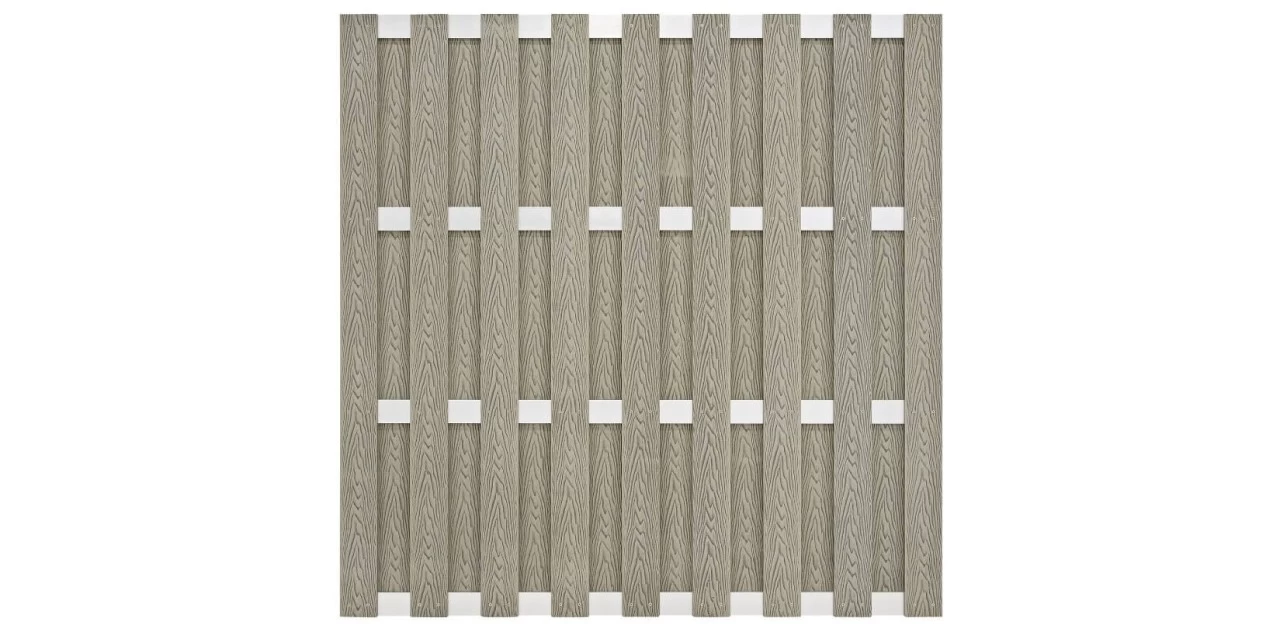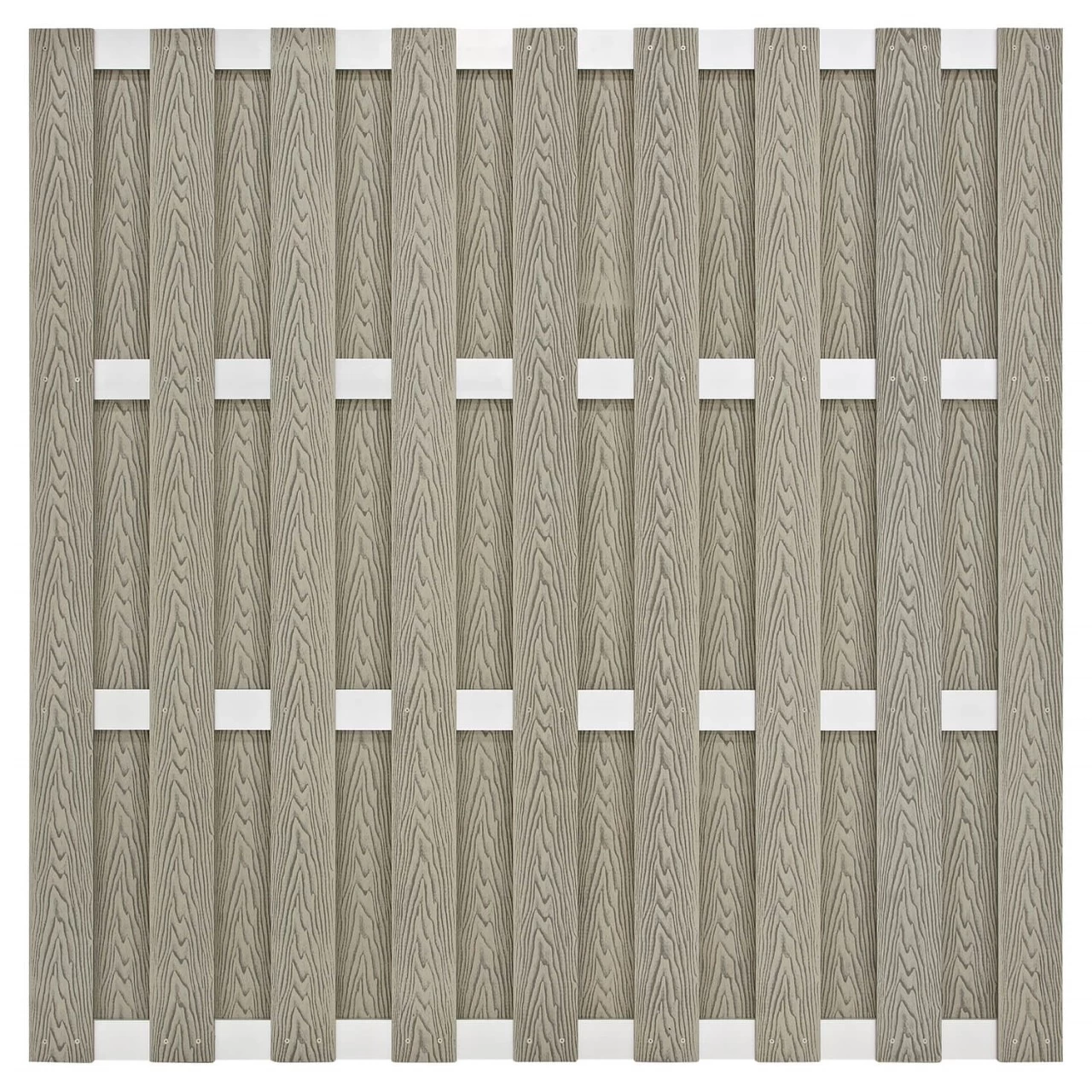 Sichtschutzzäune – Aktion, WPC (Holz-Kunststoff-Gemisch), MaĂź ca. B 180 x H 180 cm, Bohlen ca. 9 x 115 mm, mit Riegeln aus Aluminium silber, edelstahlverschraubt, ohne Pfosten (gegen Aufpreis erhältlich).