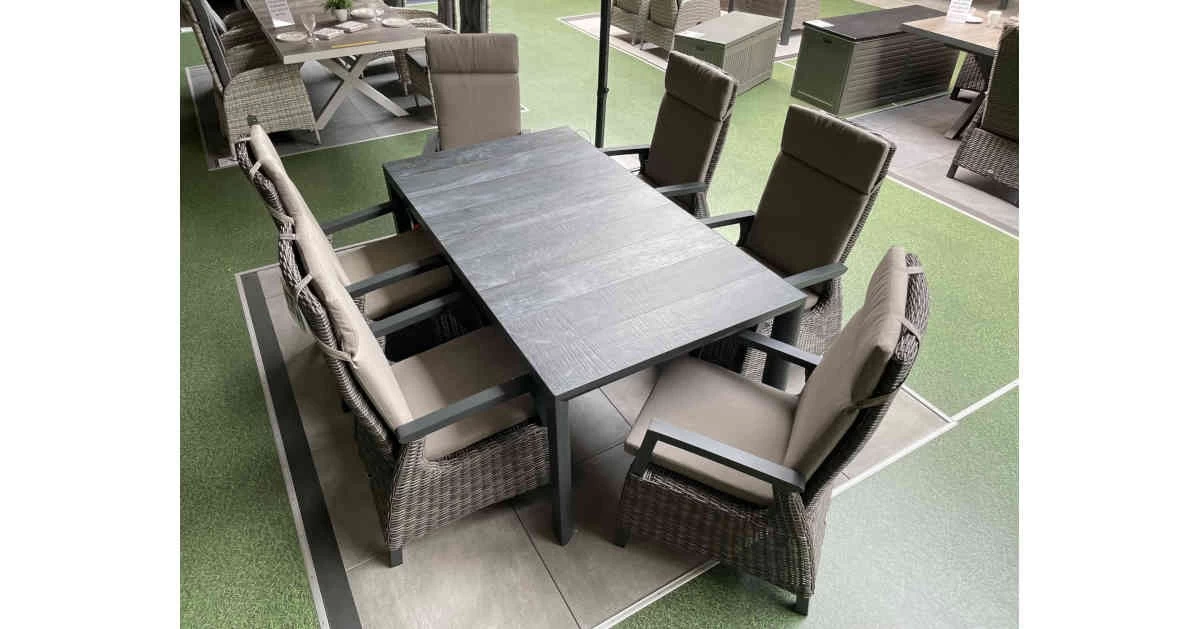 Dining-Set von SIENA GARDEN mit Gardino®-Geflecht in charcoal grey, inkl. Sitzpolster für 6 Personen