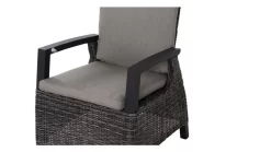 Bei Wind und Wetter sorgt die Witterungsbeständigkeit und Pflegeleichtigkeit der verwendeten Materialien fĂĽr den nötigen Schutz. Das Untergestell der Sessel besteht aus pulverbeschichtetem Aluminium in matt-anthrazit und macht sie stabil und widerstandsfähig. Aufgrund des geringen Gewichts (ca. 9,7 kg) lassen sie sich auch schnell an Ihren Lieblingsplätzen im Garten, auf der Terrasse oder auf dem Balkon platzieren. Das Aluminiumgestell wird mit halbrundem GARDINO®-Geflecht aus Polyethylen bespannt. Diese Faser trocknet besonders schnell, ist schmutzunempfindlich und verleiht mit ihrer natĂĽrlichen Optik in „charcoal grey“ jeder Gartengestaltung ein besonderes Flair. Die gemĂĽtlichen und pflegeleichten Sitzpolster aus 100 % Polypropylen (280 g/m²) sind farblich passend auf das Geflecht abgestimmt. Bei Verschmutzung können Sie die BezĂĽge abnehmen und von Hand waschen. Sie werden sehen, Ihre Wellnessoase zum Durchatmen und Entspannen bringt auch die Augen Ihrer Lieben zum Strahlen.