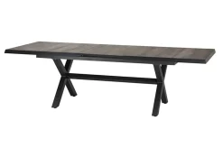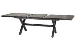 Wer das Besondere liebt ist mit diesem Ausziehtisch bestens bedient. Der Tisch bietet mit seinen MaĂźen von ca. 205/265 x 103 x 76 cm Platz fĂĽr ca. 8-10 Personen – so steht dem gemĂĽtlichen Mittagessen mit der Familie nichts mehr im Wege. Das Gestell wurde aus pulverbeschichtetem Aluminium hergestellt, was den Tisch besonders haltbar macht. Die Tischplatte besteht aus hochwertigem Keramik, während die Tischbeine fĂĽr ein weiteres optisches Highlight sorgen. Durch die groĂźzĂĽgige Unterschubhöhe kann man gemĂĽtlich mit vielen Arten von Sesseln an diesem Tisch Platz nehmen. Der Tisch ist durch das Eigengewicht von ca. 86 kg perfekt gegen Windstöße geschĂĽtzt. Die FuĂźkappen bestehen aus Kunststoff und schĂĽtzen den Boden vor unschönen Kratzern beim VerrĂĽcken des MöbelstĂĽcks.