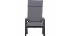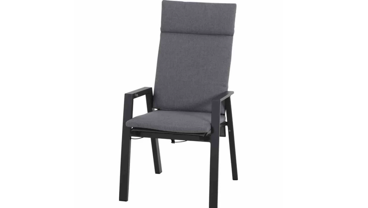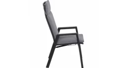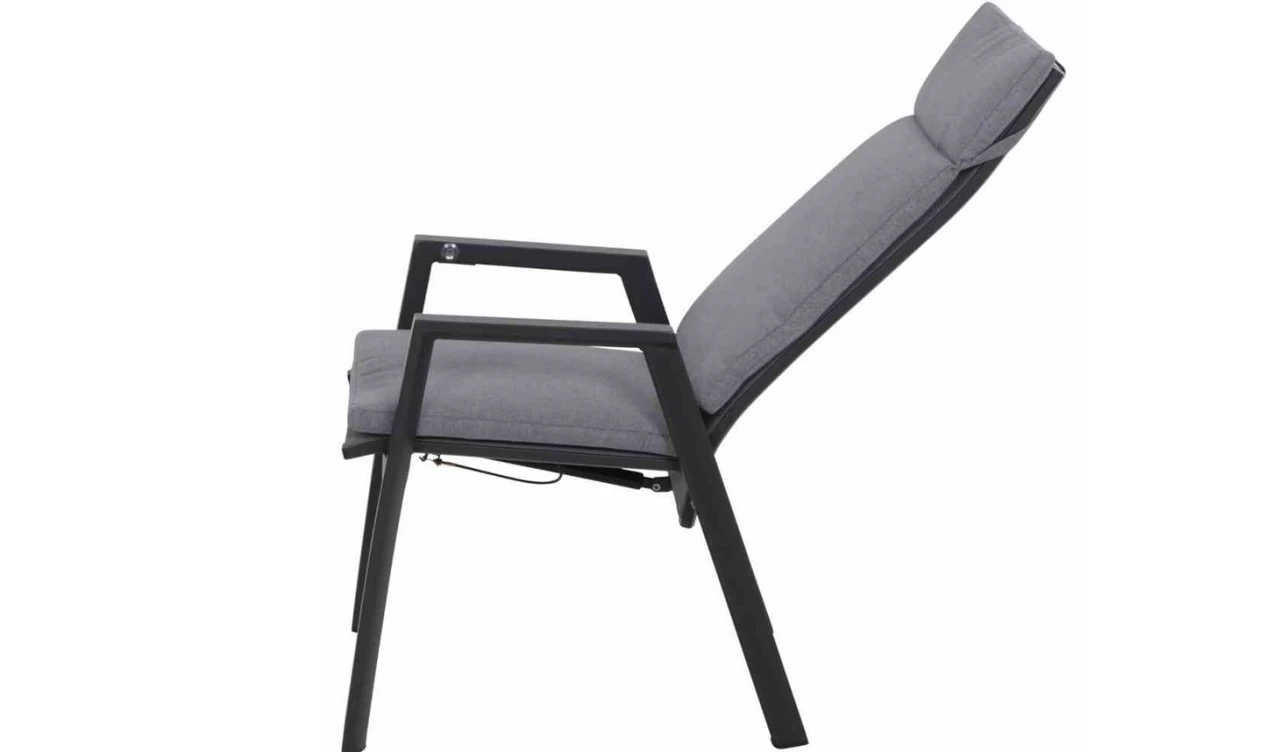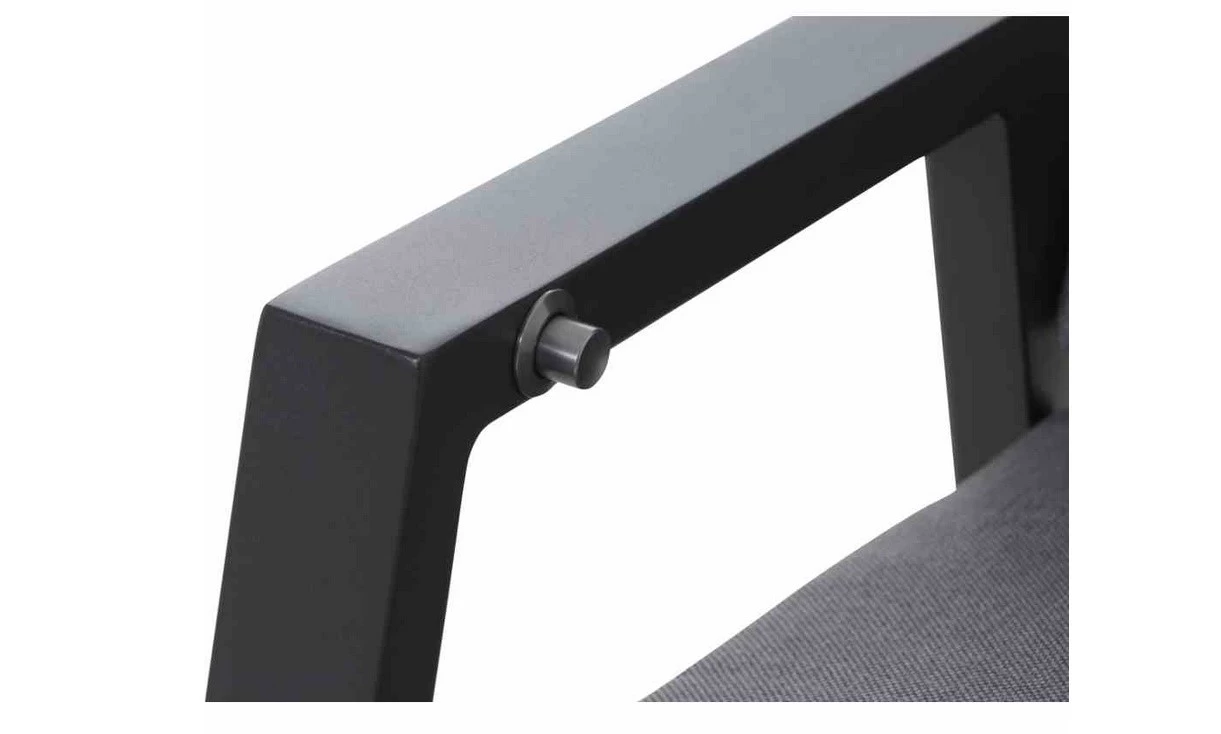 Das pulverbeschichtete Aluminiumgestell in matt anthrazit harmoniert besonders gut mit den Sitz- und Rückenkissen in der Farbkombination salt&pepper. Die Kissen sind mit einem Bezug aus Polypropylen versehen und mit top abgestimmtem Füllmaterial ausgestattet. Unter den bequemen Auflagen sorgen Flächen aus RANOTEX®-Textilgewebe für hohen Sitzkomfort. Die Rückenlehnen lassen sich durch einen kleinen Knopf an der Innenseite der Armlehnen stufenlos verstellen und bieten dadurch einen besonderes Maß an Entspannung.