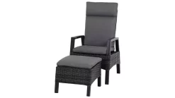 Hocker Corido, Gestell aus Aluminium pulverbeschichtet in matt anthrazit, Flächen aus Gardino®-Geflecht halbrund in charcoal grey, hochwertige Kissen aus Polypropylen 280 g/m² in taupe-meliert