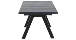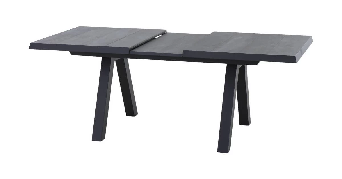 Wer das Besondere liebt und gerne auf jede Gelegenheit vorbereitet sein möchte, ist mit diesem ausziehbaren Automatik-Esstisch bestens bedient. Der Tisch ist ca. 90 cm breit und ca. 77 cm hoch, im normalen Zustand hat er eine Länge von ca. 160 cm – so steht dem gemĂĽtlichen Mittagessen mit der Familie nichts mehr im Wege. Das Gestell wurde aus pulverbeschichtetem Aluminium in Anthrazit hergestellt, was den Tisch besonders haltbar macht. Die Tischplatte besteht aus hochwertigem Keramik in anthrazitgrauer Schieferoptik. Die Platte zum Erweitern des Tisches ist ebenfalls aus Keramik gefertigt und lässt sich ganz einfach ausziehen. Man zieht einfach die beiden oberen Platten auseinander und die darunterliegende Keramikplatte schwenkt aufgrund der Automatikfunktion nach oben, und schon ist der Tisch auf ca. 200 cm erweitert – perfekt fĂĽr spontane, groĂźe Runden. Die Unterschubhöhe beträgt ca. 68 cm – so kann man gemĂĽtlich mit vielen Arten von Sesseln an diesem Tisch Platz nehmen. Der Tisch hat ein Gewicht von ca. 93,5 kg, und ist somit perfekt gegen Windstöße geschĂĽtzt. Die FuĂźkappen bestehen aus schwarzem Kunststoff und schĂĽtzen den Boden vor unschönen Kratzern beim VerrĂĽcken des MöbelstĂĽcks.