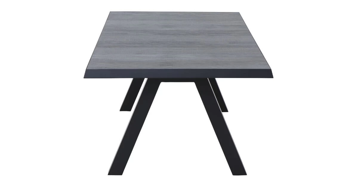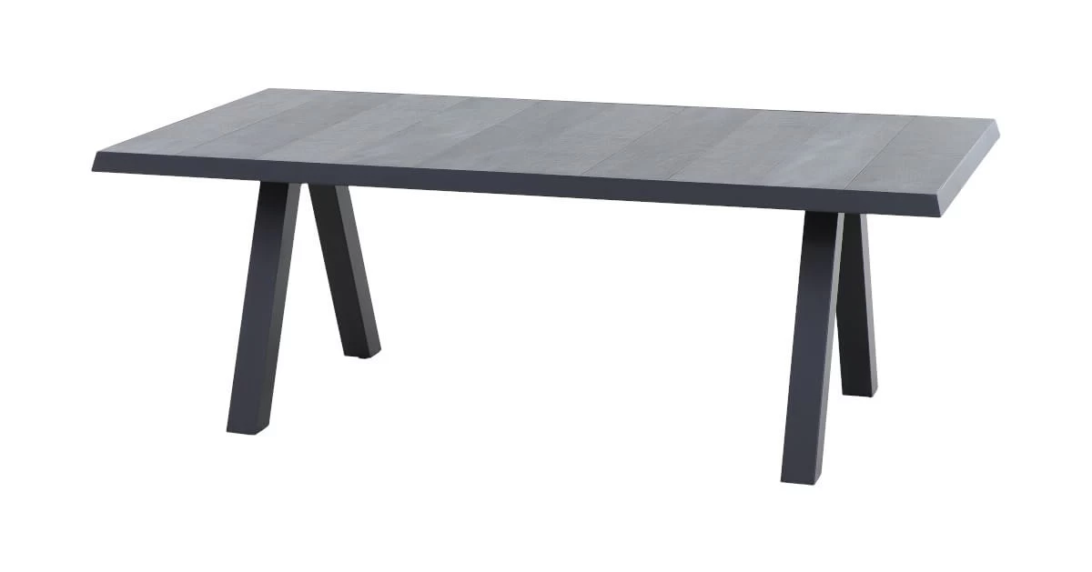 Wer das Besondere liebt und gerne auf jede Gelegenheit vorbereitet sein möchte, ist mit diesem Esstisch bestens bedient. Der Tisch ist ca. 100 cm breit und ca. 77 cm hoch, er hat eine Länge von ca. 200 cm – so steht dem gemĂĽtlichen Mittagessen mit der Familie nichts mehr im Wege. Das Gestell wurde aus pulverbeschichtetem Aluminium in Anthrazit hergestellt, was den Tisch besonders haltbar macht. Die Tischplatte besteht aus hochwertigem Keramik in anthrazitgrauer Schieferoptik. Die Unterschubhöhe beträgt ca. 68 cm – so kann man gemĂĽtlich mit vielen Arten von Sesseln an diesem Tisch Platz nehmen. Der Tisch hat ein Gewicht von ca. 93,5 kg, und ist somit perfekt gegen Windstöße geschĂĽtzt. Die FuĂźkappen bestehen aus schwarzem Kunststoff und schĂĽtzen den Boden vor unschönen Kratzern beim VerrĂĽcken des MöbelstĂĽcks.