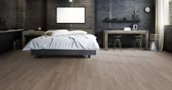 Der Design-Vinylboden ist ein echter Komfortboden mit vielen tollen Eigenschaften und insbesondere für Menschen gedacht, die einfach bequem und sorglos leben wollen – die sich also keine Zeit für aufwändige Pflege nehmen möchten oder bei jeder Aktivität krampfhaft darauf achten müssen, dass dem Boden nichts passiert. Und dabei tritt er im wahrsten Sinne des Wortes leise auf und hält sich damit dezent im Hintergrund. Einzig seine bestechende Optik steht im Vordergrund. Das macht den Design-Vinylboden zu einem Boden unserer Zeit. Der Design-Vinylboden COMFORT ist, wie der Name schon sagt, einfach komfortabel. Er besteht aus einer Vinyl-Deckschicht, die auf eine HDF-Trägerplatte aufgebracht wird. Somit erhält der Boden zusätzliche Aufbauhöhe, die Unebenheiten im Untergrund kaschiert und für ein perfektes Laufgefühl sorgt. Er verfügt über die patentierte CLICKitEASY Klickverbindung für eine schnelle und sichere schwimmende Verlegung. Die quellgeschützte Trägerplatte ist mit einer bereits integrierten Kork-Trittschalldämmung versehen und reduziert Laufgeräusche um ein Vielfaches.