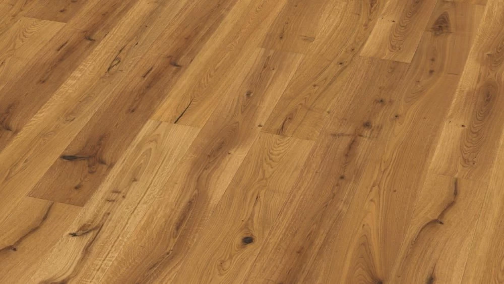 - Sortierung: „impulsiv“ – Große Äste, viel Farbspiel, gespachtelte Risse sowie ein sichtbarer Splintanteil verleihen dem besonders temperamentvollen Bodenbild viel Eigenwilligkeit