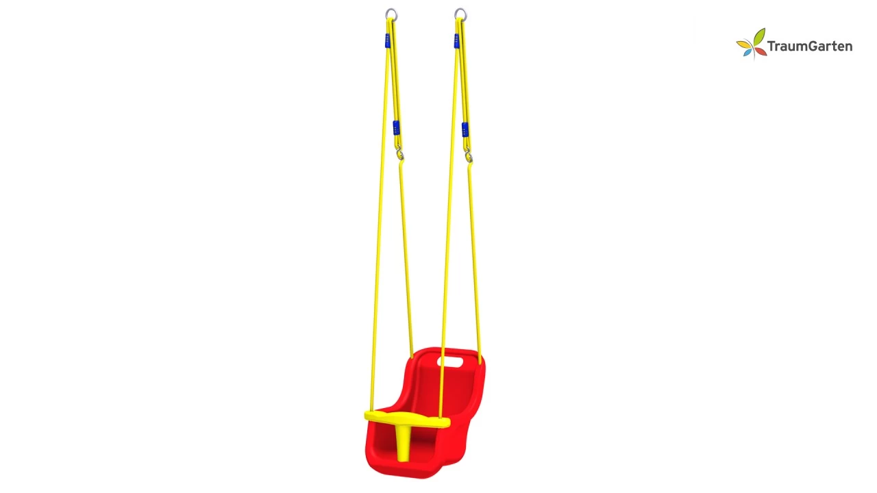 Der WINNETOO Babysitz mit einer Lehne 40 cm hoch ist ausgestattet mit einer T-Sicherung und Rückhaltegurt. Zur Aufhängung der Schaukel benötigen Sie 2 Schaukelhaken (Standard oder SAFETY).
