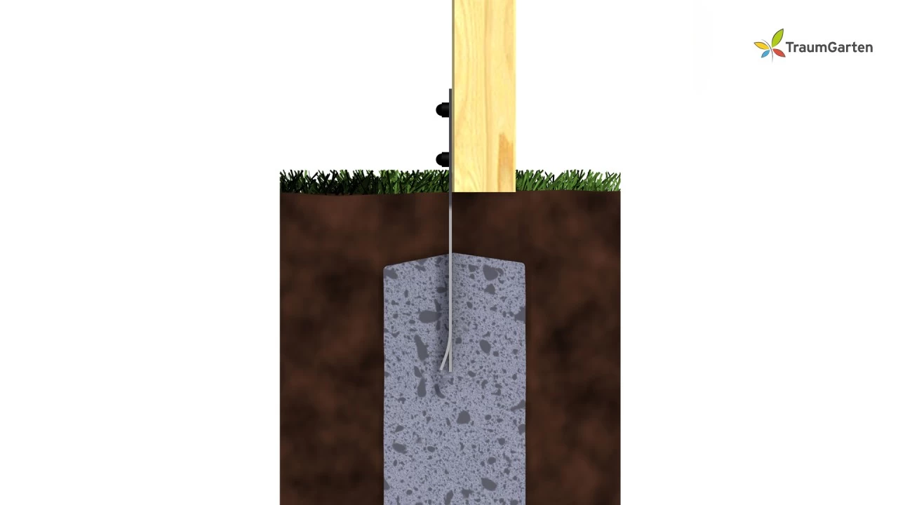 Mit den Bodenankern SAFETY aus Flachstahl können Sie sicher die Pfosten des WINNETOO Spielturms einbetonieren.