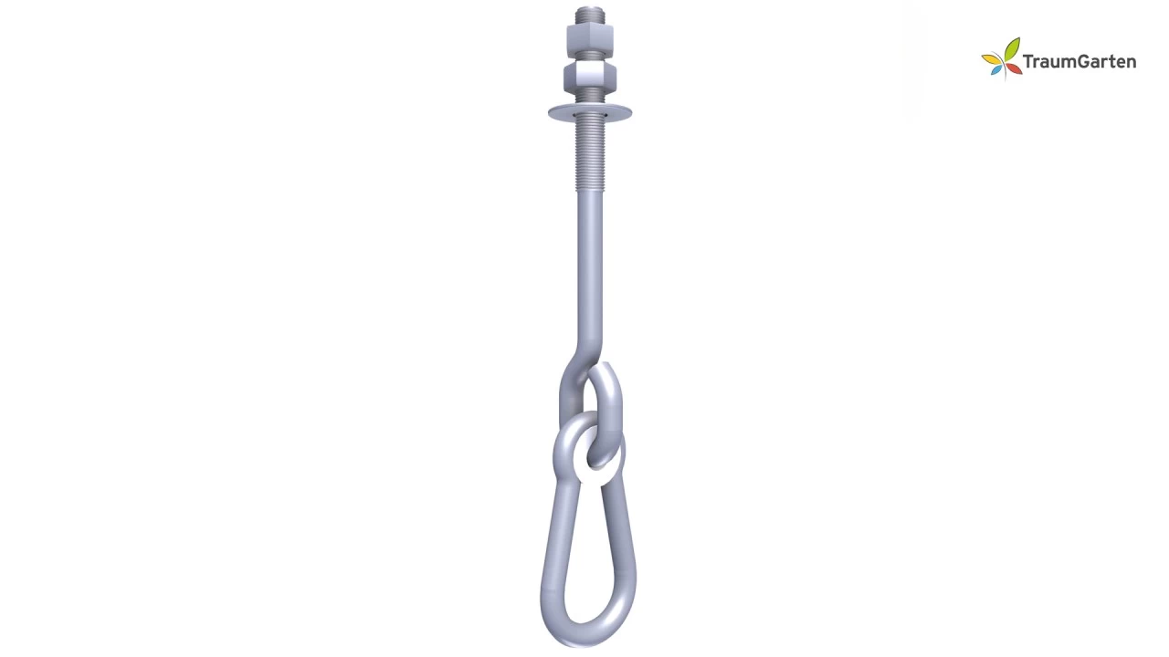 Der WINNETOO Schaukelhaken ist das Verbindungsgelenk zwischen Schaukelbalken und Schaukel. Er ist aus verzinktem Metall und hat eine Karabiner-Befestigung mit Kunststofflager.