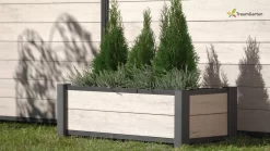 Die rechteckigen Pflanzkästen in modernem Design sind ein Blickfang im Garten oder auf Ihrer Terrasse. Sie ergänzen optimal das TraumGarten Sichtschutzsortiment aus WPC. Das pflegeleichte Material ist einfach abwaschbar und muss nicht gestrichen werden. Der Pflanzeinsatz ist im Lieferumfang enthalten.