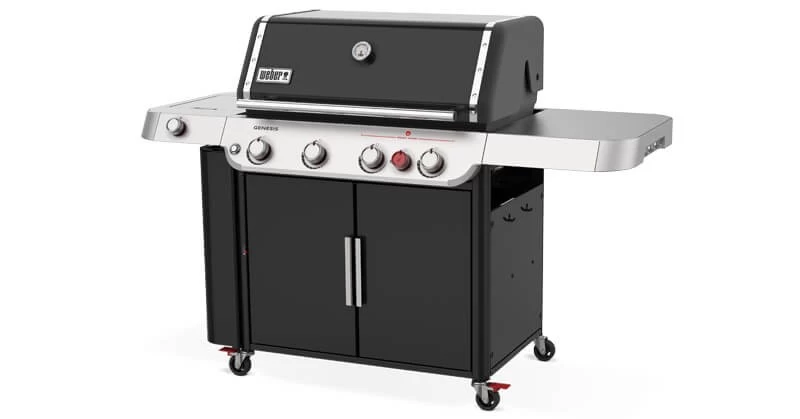 - 4 Edelstahlbrenner (Hauptbrenner: ca. 14,1kW, Sear Zone-Brenner: ca. 3,8kW, Seitenbrenner: 3,5kW)