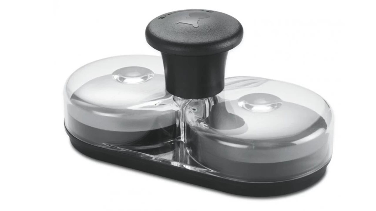 Zum gleichzeitigen Formen kleiner Burger. Die Vertiefung in der Mitte garantiert optimale Saftigkeit. Mit abnehmbarem Nylongriff fĂĽr leichtes Reinigen. SpĂĽlmaschinengeeignet.